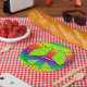 CKC-Peace Symbol-ist ein digitales Grafikdesign. Dieses Design stammt aus meiner neuen Crazy Kids Colors Collection. Starke und leuchtend verrückte Farben haben Schicht für Schicht verrückten Spaß für Kinder und Erwachsene geschaffen. Dieses Design in einem übergroßen Friedenssymbol, das auf einem soliden grünen Hintergrund ruht. Das Friedenssymbol wird mit farbenfrohen Herzen und Polka-Punkte-Muster auf einem Gradientenhintergrund gefüllt. In dieser Sammlung sind mehrere Friedenssymbol-Party-Teller verfügbar. Fühlen Sie sich frei, Text hinzuzufügen, um Ihre Teller des Friedenssymbols zu personalisieren.