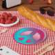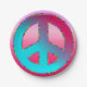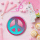 CKC-Peace Symbol-ist ein digitales Grafikdesign. Dieses Design stammt aus meiner neuen Crazy Kids Colors Collection. Starke und leuchtend verrückte Farben haben Schicht für Schicht verrückten Spaß für Kinder und Erwachsene geschaffen. Dieses Design in einem überdimensionalen Friedenssymbol, das auf einem rosa Farbverlauf ruht. Das Friedenssymbol wird mit einem rosa, lila und blauen Farbverlaufshintergrund gefüllt. Vielfarbige Metallsterne schneiden die Kanten des Friedenszeichens. In dieser Sammlung sind mehrere Friedenssymbol-Party-Teller verfügbar. Fühlen Sie sich frei, Text hinzuzufügen, um Ihre Teller des Friedenssymbols zu personalisieren.