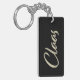 Ein sehr schöner edler personalisierter Schlüsselanhänger im whitegold Lettering Look auf schwarz für Claas.