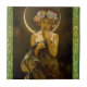 Schöne Frau mit Blumen in ihrem Haar und Fingerspitzen auf ihren Lippen, eingewickelt im starry Gewebe, mit den bloßen Schultern, stehend im Glühen eines sichelförmigen Mondes. Kunst Nouveau Lithographie 1902 durch tschechischen Künstler, Alphonse Mucha (1860-1939), erlaubt, "Clair de Lune", von "Les Etoiles".