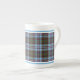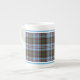 Knochen-China-Tasse in der Familie Tartan für Clan Anderson, ein aufwändiges schottisches kariertes Muster in hellblau, grün und rot, mit schwarzen, weißen und hellgelben Akzenten.