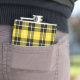 Mit Monogramm Flasche im formalen Kleidertartan von Clan Barclay, einem traditionellen schottischen karierten Muster in hellgelb und schwarz, mit weißen Akzenten.