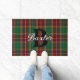 Tartan karierte Türmatte im bunten, schottischen Clan Baxter-Muster. Ein benutzerdefiniertes Monogramm mit schwarzem Single und ein Name in Weiß sind fertig, um Ihre individuellen Wünsche zu erfüllen.