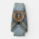 Clan Bell Wappen Abzeichen umgeben von einem Gurt und Schnalle über Tartan Hintergrund. Eigener Text.