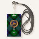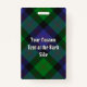 Clan Blair Wappen Abzeichen umgeben von einem Gurt und Schnalle über Tartan Hintergrund. Eigener Text.