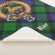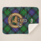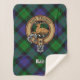 Clan Blair Wappen Abzeichen umgeben von einem Gurt und Schnalle über Tartan Hintergrund. Eigener Text.