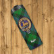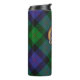 Clan Blair Wappen Abzeichen umgeben von einem Gurt und Schnalle über Tartan Hintergrund. Eigener Text.