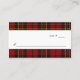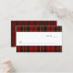 Stilvolle karierte Hochzeitsempfang-Platzkarte in den karierten Mustern Rot, Schwarz und Gelb Brodie Tartan. Ein weißer Textbereich, der über die Mitte der Karte verläuft, mit schwarzem benutzerdefiniertem Text. Behalt diesen Text, ändere ihn oder lösche ihn alle.