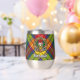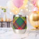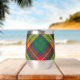 Clan Buchanan Wappen Abzeichen umgeben von einem Gurt und Schnalle über Tartan Hintergrund. Benutzerdefinierter Text auf beiden Seiten.