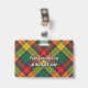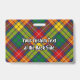 Clan Buchanan Wappen Abzeichen umgeben von einem Gurt und Schnalle über Tartan Hintergrund. Benutzerdefinierter Text auf beiden Seiten.
