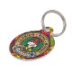 Clan Buchanan Wappen Abzeichen umgeben von einem Gurt und Schnalle über Tartan Hintergrund. Benutzerdefinierter Text auf beiden Seiten.