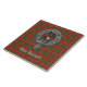 Keramik Kachel mit schottischem Clan Burnett modernem tartan Hintergrund mit klanischem Wappen Abzeichen und anpassbarem Text.