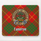 Clan Cameron Wappen Abzeichen umgeben von einem Gurt und Schnalle über Tartan Hintergrund. Eigener Text.
