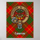Clan Cameron Wappen Abzeichen umgeben von einem Gurt und Schnalle über Tartan Hintergrund. Eigener Text.