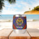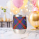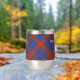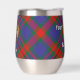 Clan Carnegie Wappen Abzeichen umgeben von einem Gurt und Schnalle über Tartan Hintergrund. Benutzerdefinierter Text auf beiden Seiten.