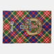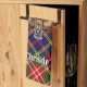 Clan Christie crest badge surrounded by a strap and buckle over tartan background. Custom text.
