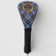 Clan Clark Wappen Abzeichen umgeben von einem Gurt und Schnalle über Tartan Hintergrund. Eigener Text.