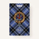 Clan Clark Wappen Abzeichen umgeben von einem Gurt und Schnalle über Tartan Hintergrund. Eigener Text.