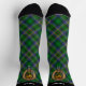 Clan Cockburn Wappen Abzeichen umgeben von einem Gurt und Schnalle über Tartan Hintergrund. Benutzerdefinierte Farbe des oberen Streifens. Benutzerdefinierter Text auf jeder Socke.