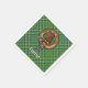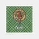 Clan Currie Hahn Wappen Abzeichen umgeben von einem Gurt und Schnalle über Tartan Hintergrund. Eigener Text.