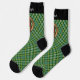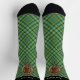 Clan Currie Hahn Wappen Abzeichen umgeben von einem Gurt und Schnalle über Tartan Hintergrund. Benutzerdefinierte Farbe des oberen Streifens. Benutzerdefinierter Text auf jeder Socke.
