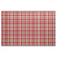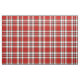 Gewebe mit dem Drummond von Perth-Kleidertartan, ein traditionelles schottisches kariertes Muster in hellem Rotem, grau und weiß, mit den schwarzen und gelben Akzenten.