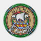 Clan Duncan crest badge surrounded by a strap and buckle over tartan background. Custom text.
