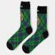 Clan Duncan crest badge surrounded by a strap and buckle over tartan background. Custom top stripe color. Custom text on each sock.