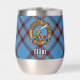 Clan Elliot Wappen Abzeichen umgeben von einem Gurt und Schnallen über antikes tartanisches Hintergrund. Benutzerdefinierter Text auf beiden Seiten.