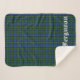 Schottischer Clan Ferguson (Fergusson) kariertes Tartan-Muster mit Alt-Weiß-Schriftart-Text-Overlay auf einer schimmernden weichen Sherpa-Decke.