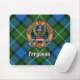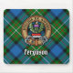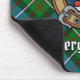 Clan Ferguson Wappen Abzeichen umgeben von einem Gurt und Schnalle über Tartan Hintergrund. Eigener Text.