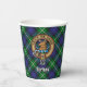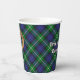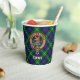 Clan Forbes Wappen Abzeichen umgeben von einem Gurt und Schnallen über Tartan Hintergrund. Benutzerdefinierter Text auf beiden Seiten.
