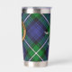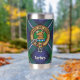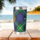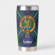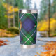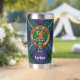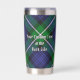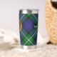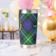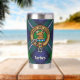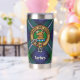 Clan Forbes Wappen Abzeichen umgeben von einem Gurt und Schnallen über Tartan Hintergrund. Benutzerdefinierter Text auf beiden Seiten.