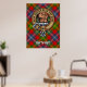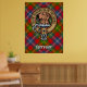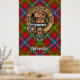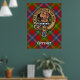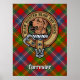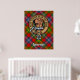 Clan Forrester Wappen Abzeichen umgeben von einem Gurt und Schnalle über Tartan Hintergrund. Eigener Text.