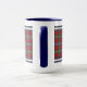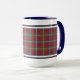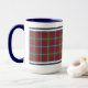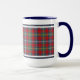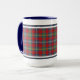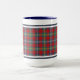 Kaffee Tasse mit dem modernen Tartan für Clan Foster und Forrester. Navy blaue, rote und grüne schottische karierte Muster aus dem Jahr 1990 mit hellgelben und weißen Highlights.