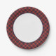 Papier Party Teller mit einer Grenze der modernen Tartan für Clan Fraser von Lovat und seine Teile, einschließlich Simson. Hellrot und marineblau schottisches kariertes Muster aus dem Jahre 1893 mit waldgrünen und weißen Akzenten. Erhältlich in zwei Größen.