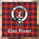 Stilvolle Fensterklammern mit schottischem Clan Fraser Wappen-Abzeichen und anpassbarem Text auf tartan Hintergrund