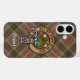 Clan Fraser Wappen Abzeichen umgeben von einem Gurt und Schnallen über die Jagd verwitterten tartan Hintergrund. Benutzerdefinierter Text.