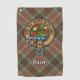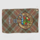 Clan Fraser Wappen Abzeichen umgeben von einem Gurt und Schnallen über die Jagd verwitterten tartan Hintergrund. Benutzerdefinierter Text.