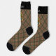 Clan Fraser Wappen Abzeichen umgeben von einem Gurt und Schnalle über verwitterten Jagdtartan Hintergrund. Benutzerdefinierte Farbe des oberen Streifens. Benutzerdefinierter Text auf jeder Socke.