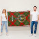 Clan Gregor oder MacGregor-Abzeichen umgeben von einem Gurt und einer Schnalle über einem Tartan-Hintergrund. Benutzerdefinierter Text.