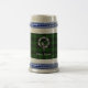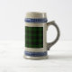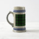 Handsome beer stein featuring Scottish Clan Gunn tartan and crest badge with customizable Old World style text.