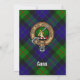 Clan Gunn Wappen Abzeichen umgeben von einem Gurt und Schnalle über Tartan Hintergrund. Benutzerdefinierter Text auf beiden Seiten.