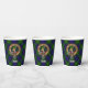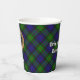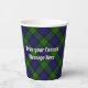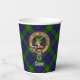 Clan Gunn Wappen Abzeichen umgeben von einem Gurt und Schnalle über Tartan Hintergrund. Benutzerdefinierter Text auf beiden Seiten.