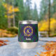Clan Gunn Wappen Abzeichen umgeben von einem Gurt und Schnalle über Tartan Hintergrund. Benutzerdefinierter Text auf beiden Seiten.