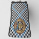 Clan Haig crest badge surrounded by a strap and buckle over check tartan background. Custom text.