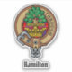 Clan Hamilton Wappen Abzeichen umgeben von einem Gurt und Schnalle über rot Tartan Hintergrund. Eigener Text.