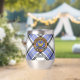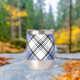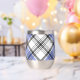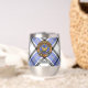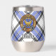 Clan Hannay Wappen Abzeichen umgeben von einem Gurt und Schnalle über Tartan Hintergrund. Benutzerdefinierter Text auf beiden Seiten.