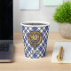 Clan Hannay Wappen Abzeichen umgeben von einem Gurt und Schnalle über Tartan Hintergrund. Benutzerdefinierter Text auf beiden Seiten.