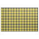 Stoff mit dem Clan Hughes Tartan, ein kariertes, traditionelles Muster aus dem Jahr 1975 in hellgelb und schwarz, mit Akzenten in den Farben Blau. Muster wiederholt sich alle 4". Spezielle Bestellung kleiner oder größer über https://plaidwerx.com/contact.htm